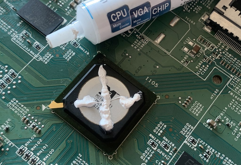 지금까지의 시도들이 모두 실패 했지만, 효율좋은 통구리 heatsink 을 통한 열 배출과, 쎈 장력으로 main chip 을 눌러주면 혹시 되지 않을까 하여 장착해 봅니다, 서멀 그리스를 쳐발쳐발.